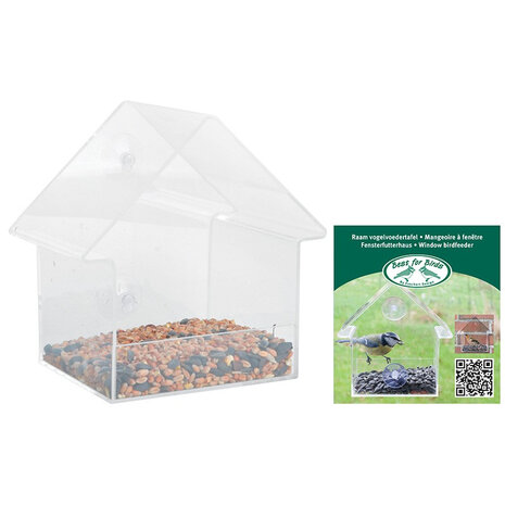 Dit voederhuisje kun je met de meegeleverde zuignappen op het raam bevestigen. Zo kun jij vanuit je woonkamer precies ziet wat er allemaal in het huisje gebeurt! Het voederhuisje is zeer eenvoudig bij te vullen en schoon te maken. - Materiaal: PMMA, PVC - Afmetingen: 15,0x10,0x15,3 cm