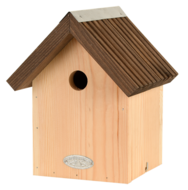 Dit nestkastje is gemaakt van natuurlijke materialen en is speciaal ontworpen voor de pimpelmees. Behalve pimpelmeesjes kunt je ook andere vogels zoals ook de kuifmees, de glanskop, de matkop en de zwarte mees in dit vogelhuis verwachten. Een juiste plaats om 't nestkastje voor pimpelmeesjes op te hangen is een rustige en enigszins beschutte plek in de tuin.